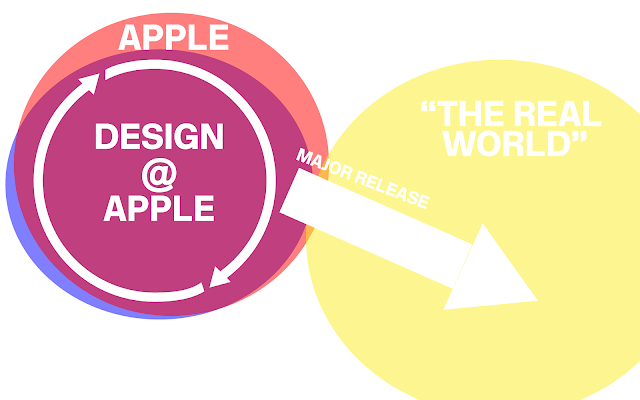 Apple is characterised by the internal nature of it's R&D operations, hiring talented designers to work on products internally in total secrecy for years until a product is launched and released within the space of a few months.